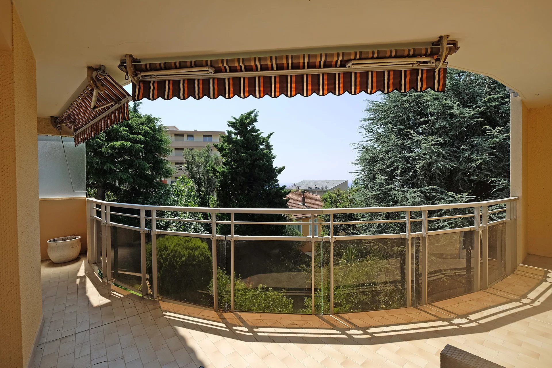 NICE OUEST - BEAU 4 PIECES DE 85M² - DOUBLE GARAGE ET CAVE Magnifique 4 pièces traversant de 85m² Lanterne. Il se compose comme suit : une entrée ouverte, un grand séjour de 24.10 m² donnant sur une terrasse de 15.90 m² exposé au Sud, une cuisine équipée intégralement refaite, une chambre maître avec sa propre salle d'eau avec toilettes, une salle de bains, un deuxième WC et deux autres chambres. L'appartement a été entièrement repeint. Toutes les pièces donnent sur l'une des terrasses. Vue Mer et verdure, au calme et traversant. Un double garage et une cave viennent compléter cet appartement. A visiter ! Les informations sur les risques auxquels ce bien est exposé sont disponibles sur le site Géorisques 'http://georisques.gouv.fr'.