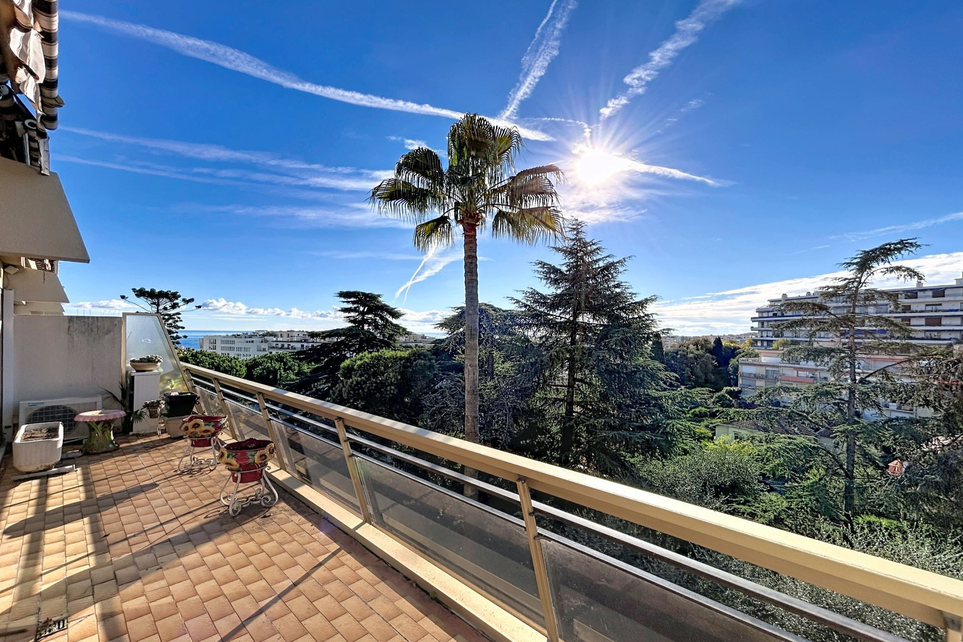 NICE OUEST Carras / Californie DERNIER ÉTAGE / GARAGE / PROCHE TRAM ET MER / TERRASSESituation idéale, au c?ur du quartier commerçant de Carras, à 200 mètres du tram et des plages de la prestigieuse Promenade des Anglais, venez découvrir ce grand 3 pièces de 87 m² en dernier étage au sein d'une résidence de standing sécurisée. Exposé sud-ouest, vous profiterez d'une première chambre et d'un vaste séjour de 29 m² baigné de lumière, tous deux donnant sur une terrasse de 17 m² à ciel ouvert. De l'autre côté, la cuisine et la seconde chambre avec salle de douche s'ouvrent sur un large balcon offrant une jolie vue mer sur la baie des Anges. L'appartement dispose également d'une salle de bains, d'une salle d'eau, de WC indépendants et d'un dressing. Une cave et un garage en sous-sol complètent ce bien, avec possibilité d'acquérir un second garage, très rare à cet endroit.À rénover selon vos envies, ce bien offre un potentiel rare, une luminosité exceptionnelle et un cadre de vie privilégié à proximité immédiate de toutes les commodités.